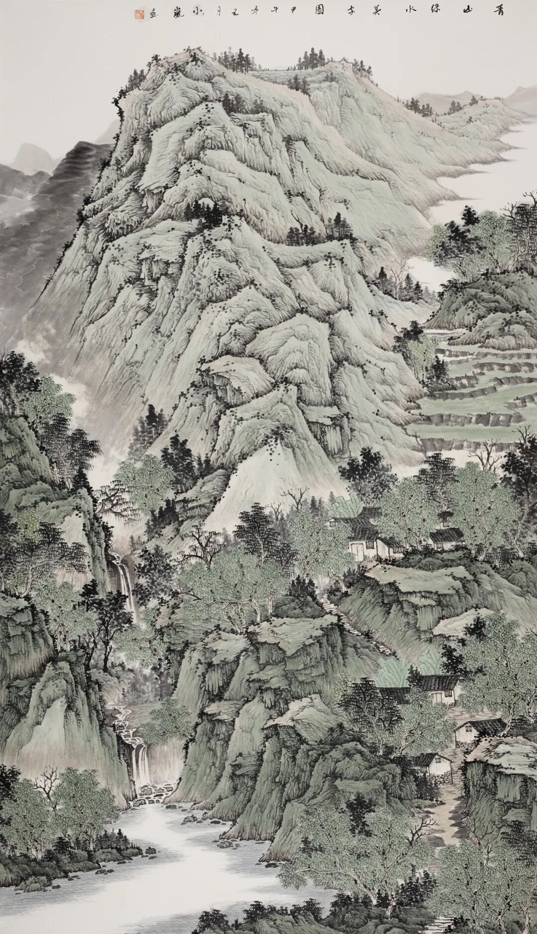 她的设色,淡而不薄、雅而不俗,与墨色完美相融,层次细腻却不张扬,色彩清淡柔和、素净雅致,如月光洒地、清风拂山,自带温润无尘的气质,让山水更显清隽柔和,似未经尘世沾染,满是天然去雕饰的纯净之美。